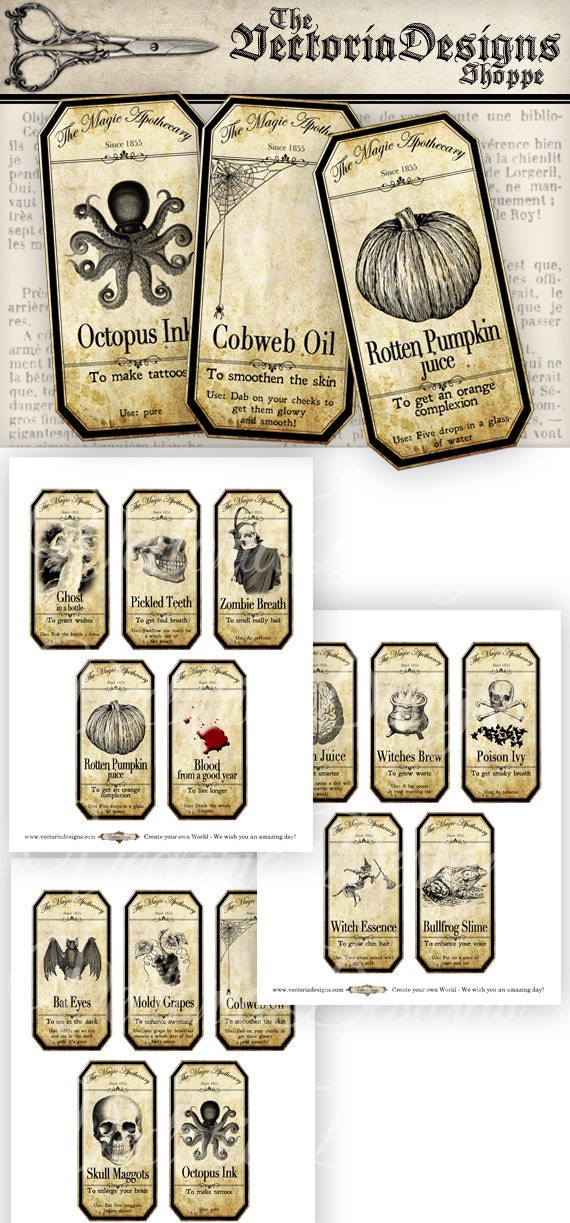 Halloween Apothecary Labels Printable Halloween Potion Labels - Etsy Halloween Apothecary Labels Printable, Halloween Potion Labels Download, Halloween Bottle Labels Printable, Halloween Party Decorations $3.29 In stock Add to cart 547 reviews Buyers are raving! Multiple people gave 5-star reviews to this shop in the past 7 days. Reviews for this item 11 Reviews for this shop 547 Sort by: Recommended