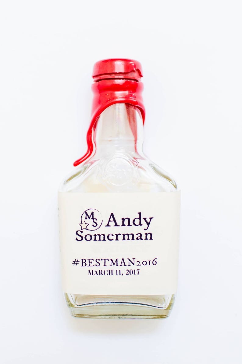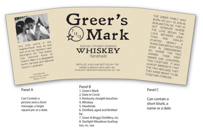 Personalized Label to fit Maker's Mark Bottles Personalized Maker's Mark Labels for any occasion. These make great custom gift items for Weddings, Anniversaries, Graduations, Best Man, Groomsmen, Bridesmaids, Maid of Honor, Baby Announcements, Godparents, Birthdays, Holidays, Memorials and anything else you can think of. Labels are Printed on Tan Adhesive Paper, (No glue is required)